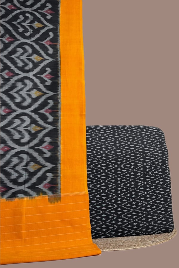 Black – 2pc Ikkat Cotton Dupatta and Handloom Soft Ikkat Cotton Top Fabric Set
