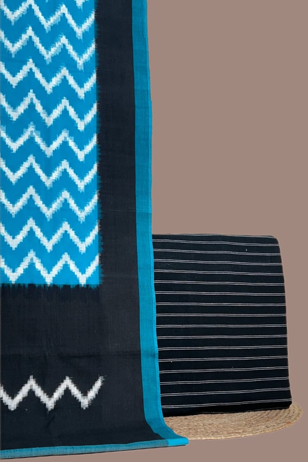 Black – 2pc Ikkat Cotton Dupatta and Handloom Soft Ikkat Cotton Top Fabric Set