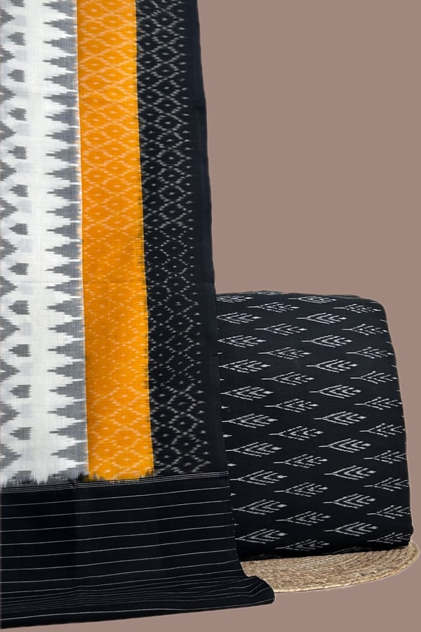Black – 2pc Ikkat Cotton Dupatta and Handloom Soft Ikkat Cotton Top Fabric Set