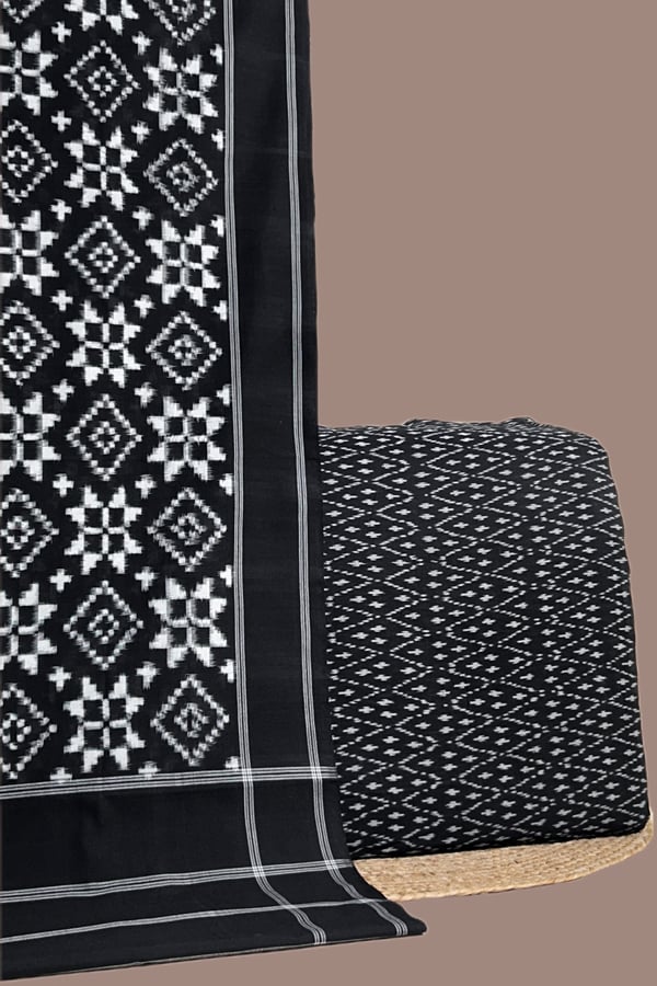 Black – 2pc Ikkat Cotton Dupatta and Handloom Soft Ikkat Cotton Top Fabric Set