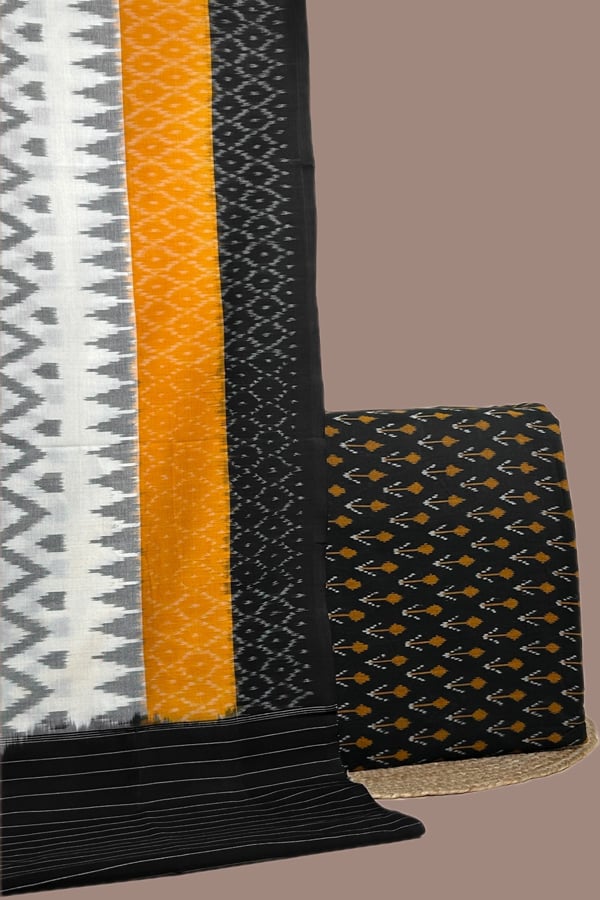Black – 2pc Ikkat Cotton Dupatta and Handloom Soft Ikkat Cotton Top Fabric Set