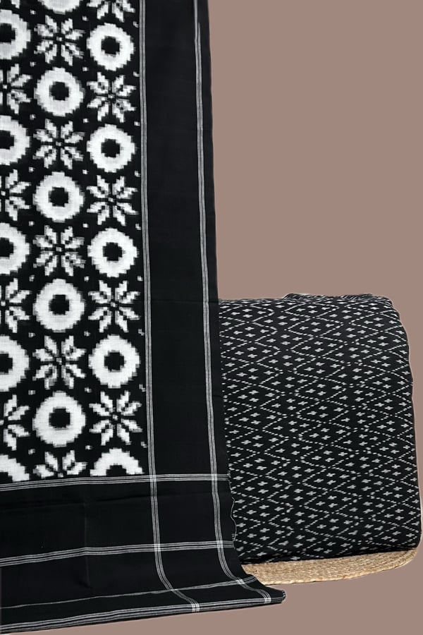 Black – 2pc Ikkat Cotton Dupatta and Handloom Soft Ikkat Cotton Top Fabric Set