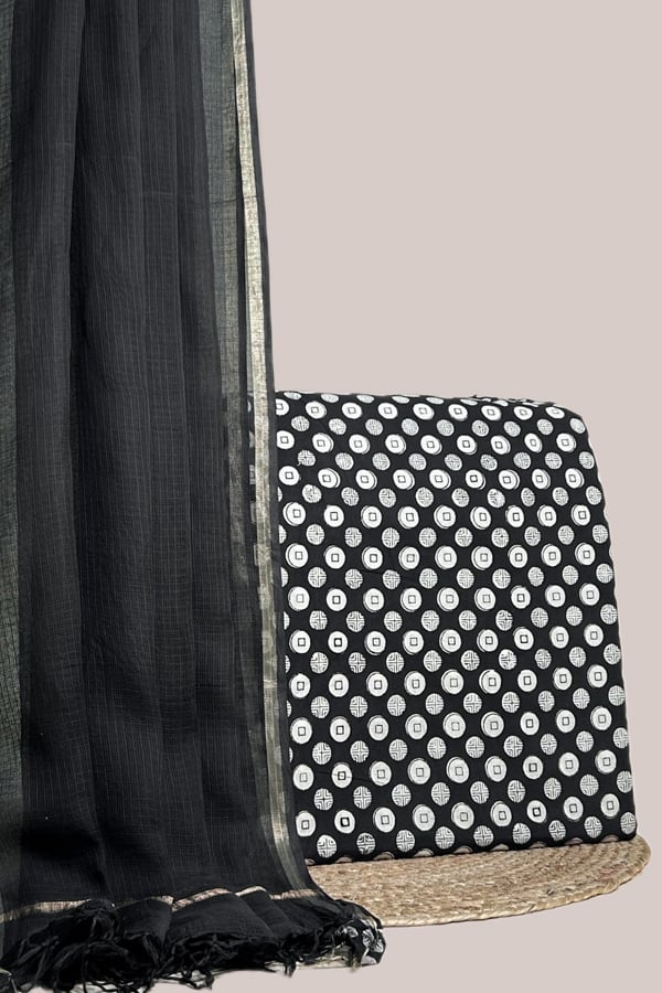 Black – 2pc Kota Doria Dupatta and Bagru HandBlock Pure Cotton Set