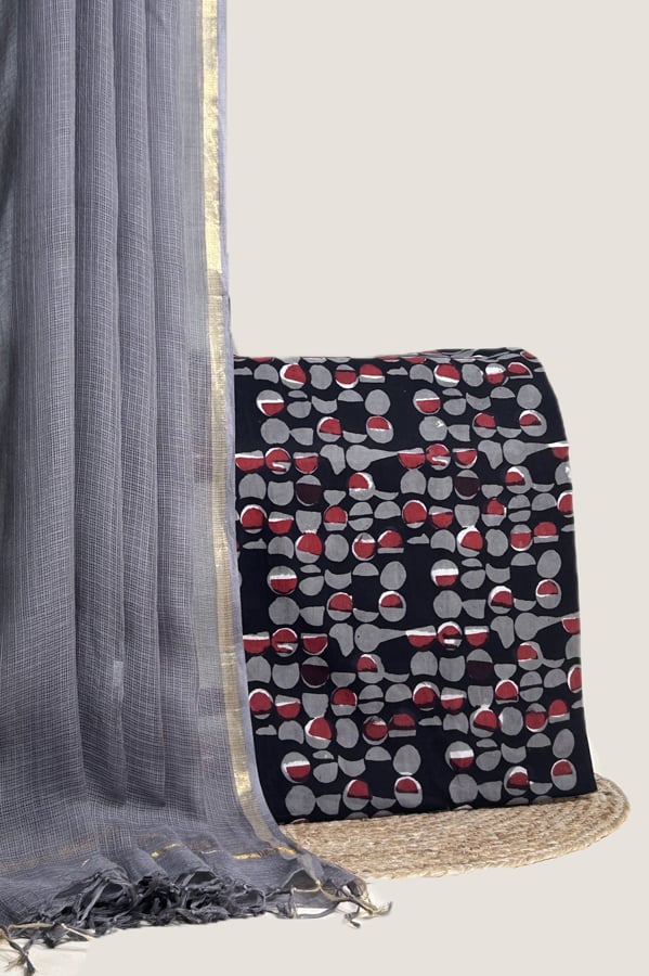 This Fabric is handloom woven and / or hand printed using vegetable dyes. There might be slight irregularities in the motif & colour shade which is a result of human involvement & is a hallmark of fabrics made by hand. Since the fabric is dyed using natural, vegetable dyes, it may rub dry or bleed colour on coming in contact with water for the first time.
