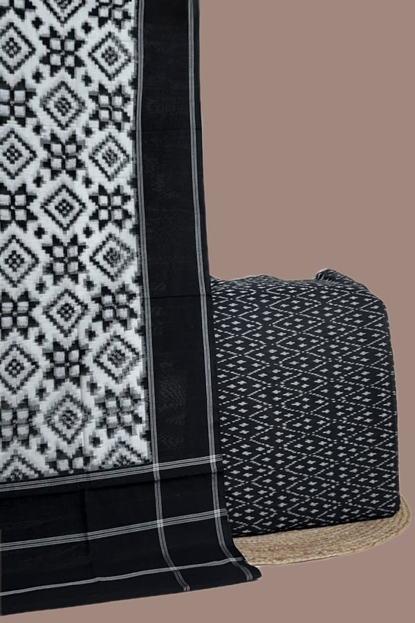 Black – 2pc Teliya Intricate Ikkat Cotton Dupatta and Handloom Soft Ikkat Cotton Top Fabric Set