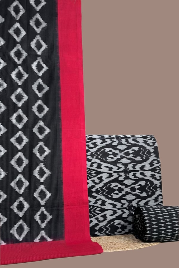 Black – 3pc Handloom Soft Ikkat Cotton Dupatta with Soft Ikkat Top And Bottom Set