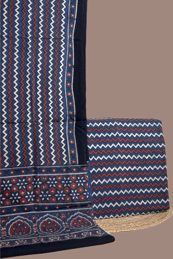 2.5mtr Each – Natural Dye Ajrakh HandBlock Printed Cotton Dupatta and Top Cotton Fabric Set
