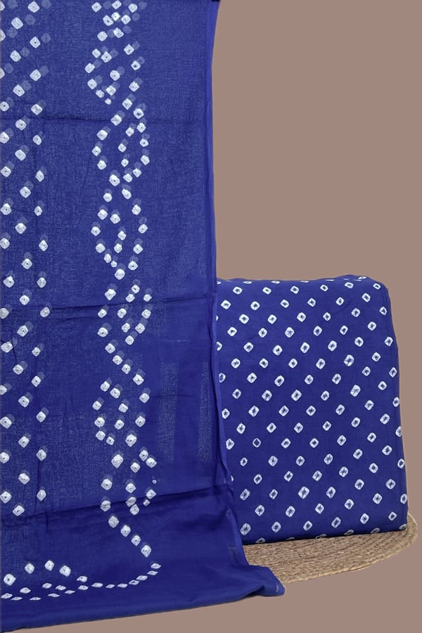Blue – 2pc Bandhani Cotton Dupatta with Cotton Bandhani Top Fabric Set