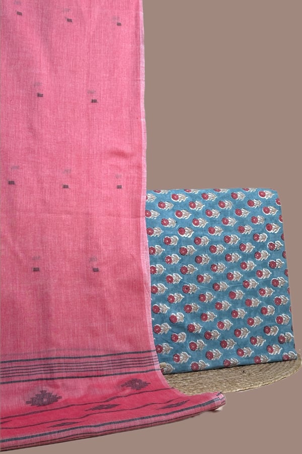 2.5mtr Each – Handloom Cotton Dupatta with HandBlock Printed Pure Soft Cotton Top Fabric Set