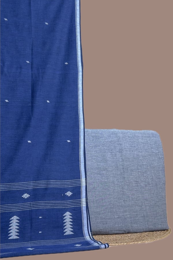 Blue – 2pc Handloom Cotton Dupatta and Handloom Soft Cotton Top Fabric Set