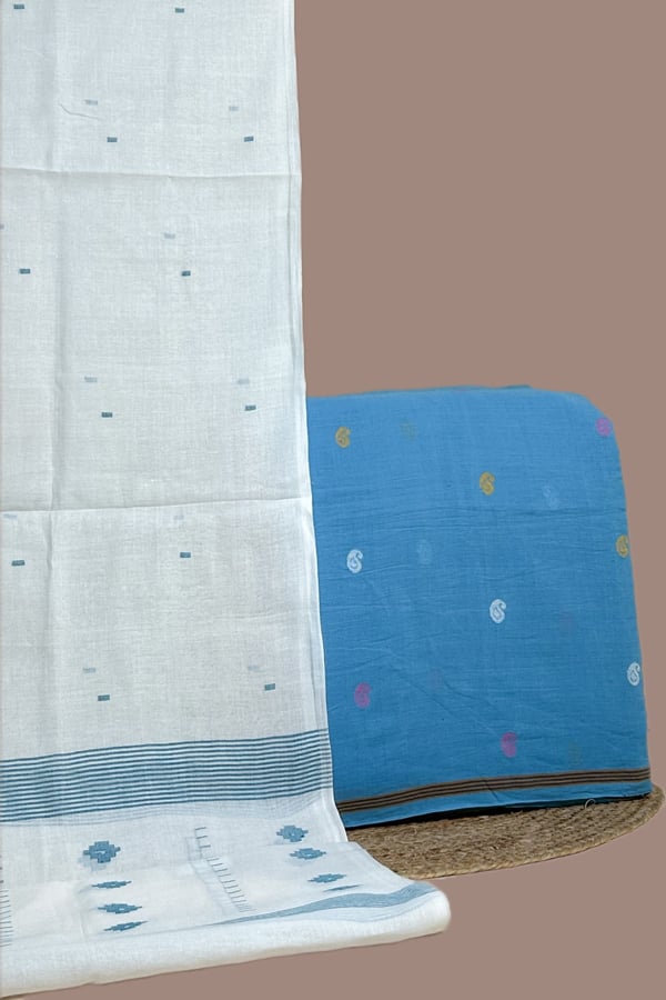 Blue – 2pc Handloom Cotton Dupatta and Handloom Woven Design Top Fabric Set