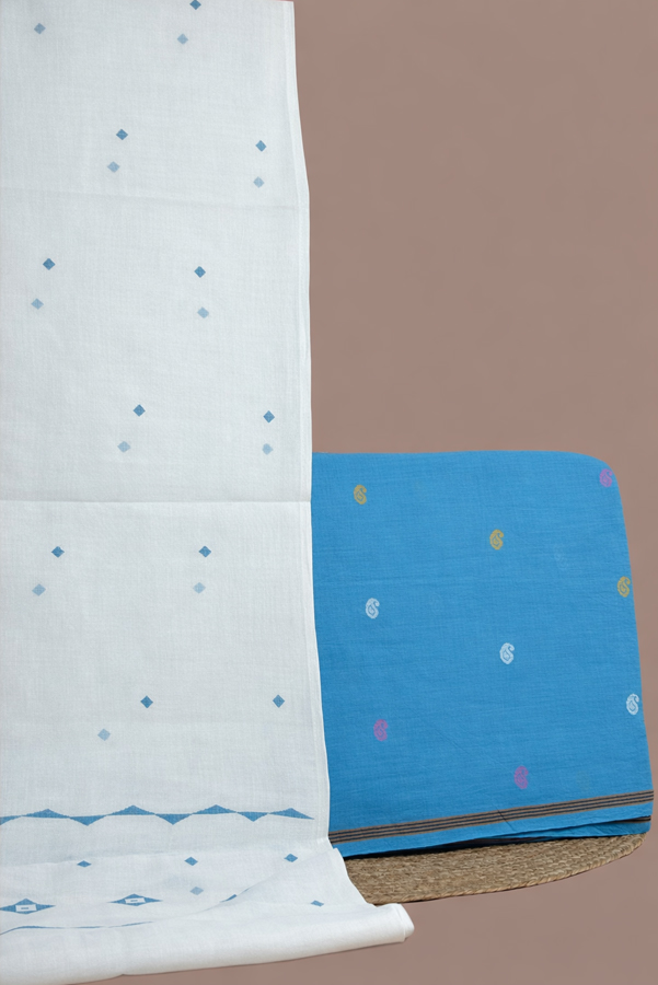 Blue – 2pc Handloom Cotton Dupatta and Handloom Woven Design Top Fabric Set