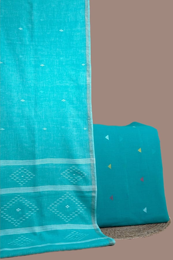 Blue – 2pc Handloom Cotton Dupatta and Handloom Woven Design Top Fabric Set
