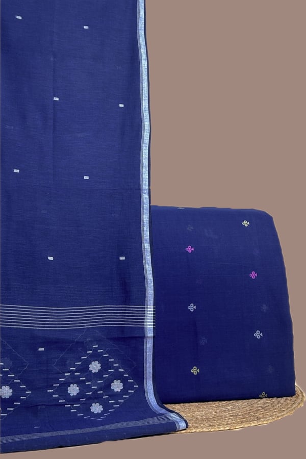 Blue – 2pc Handloom Cotton Dupatta and Handloom Woven Design Top Fabric Set