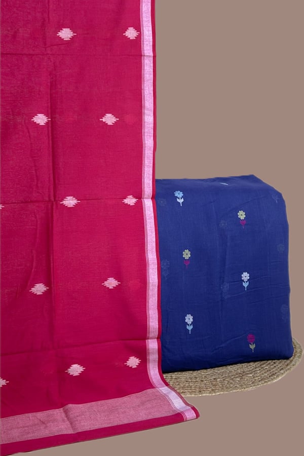 Blue – 2pc Handloom Cotton Dupatta and Handloom Woven Design Top Fabric Set