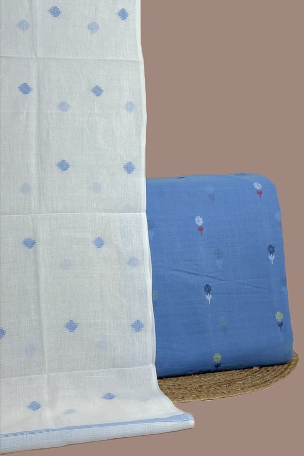 Blue – 2pc Handloom Cotton Dupatta and Handloom Woven Design Top Fabric Set
