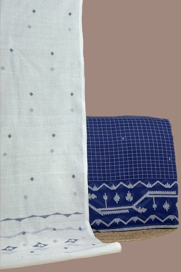 Blue – 2pc Handloom Cotton Dupatta and Jamdani Intricate Woven Border Top Fabric Set