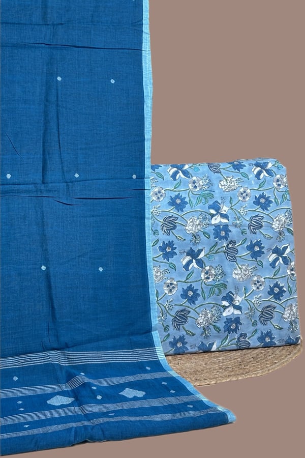 2.5mtr Each – Handloom Cotton Dupatta with HandBlock Printed Pure Soft Cotton Top Fabric Set