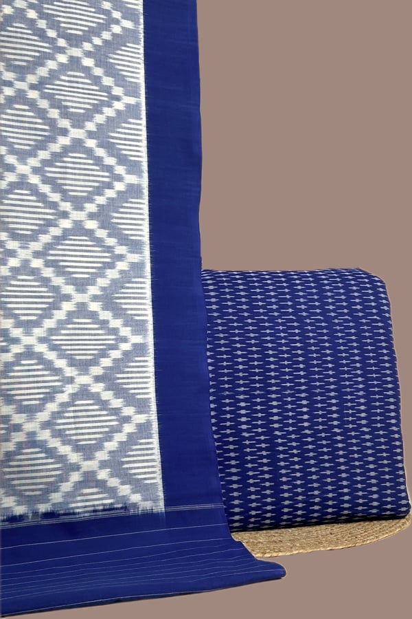 Blue – 2pc Ikkat Cotton Dupatta and Handloom Soft Ikkat Cotton Top Fabric Set