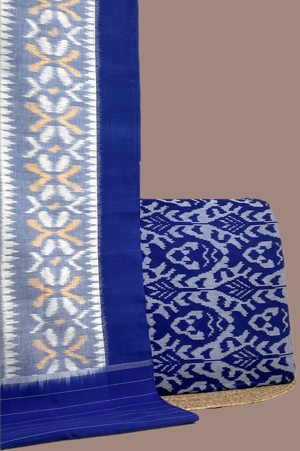 Blue – 2pc Ikkat Cotton Dupatta and Handloom Soft Ikkat Cotton Top Fabric Set