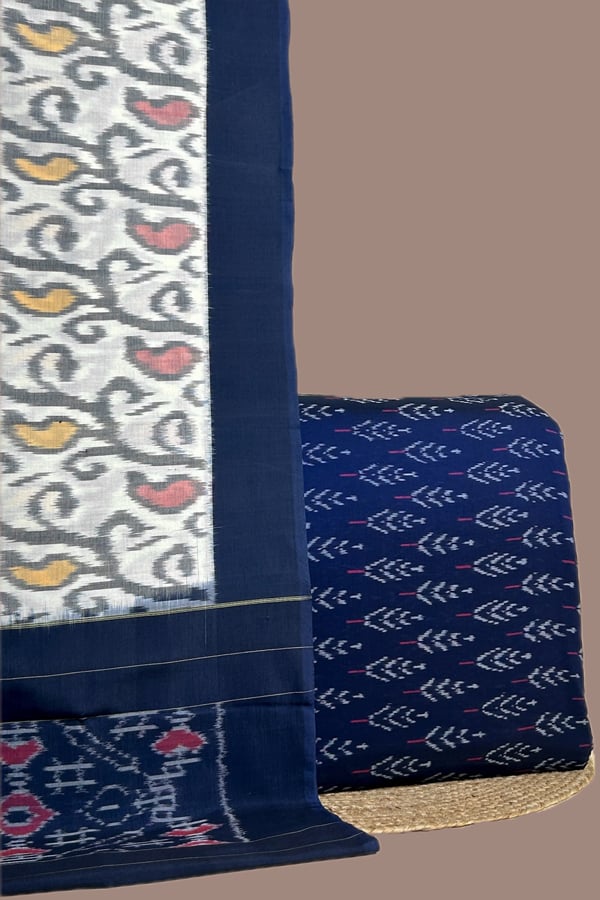 Blue – 2pc Ikkat Cotton Dupatta and Handloom Soft Ikkat Cotton Top Fabric Set