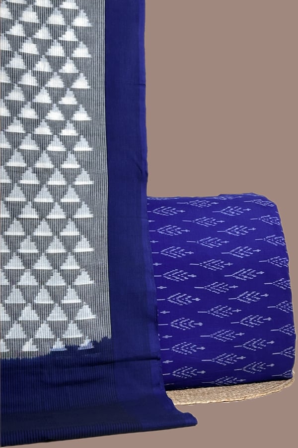 Blue – 2pc Ikkat Cotton Dupatta and Handloom Soft Ikkat Cotton Top Fabric Set