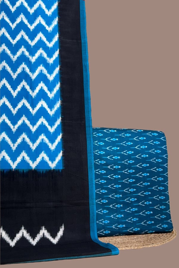 Blue – 2pc Ikkat Cotton Dupatta and Handloom Soft Ikkat Cotton Top Fabric Set