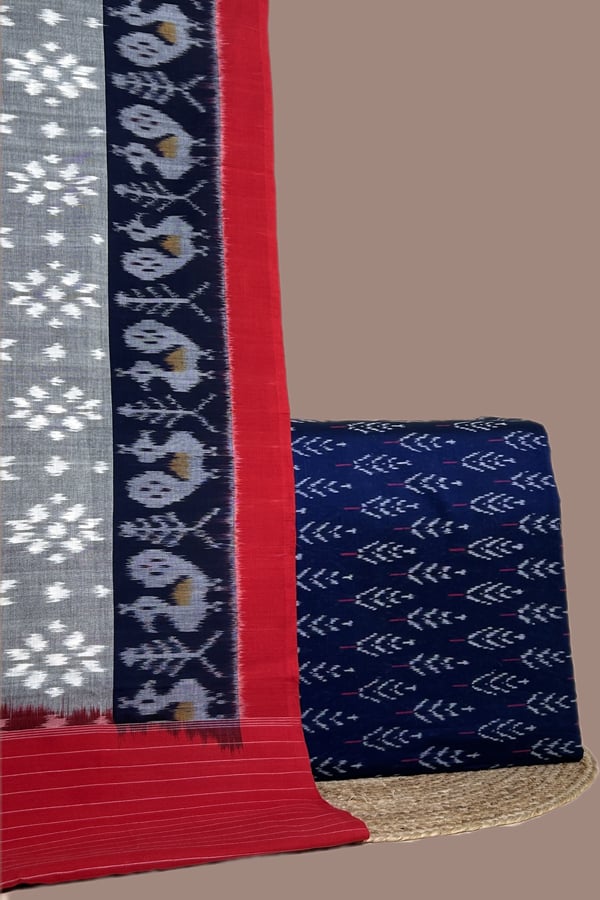 Blue – 2pc Ikkat Cotton Dupatta and Handloom Soft Ikkat Cotton Top Fabric Set
