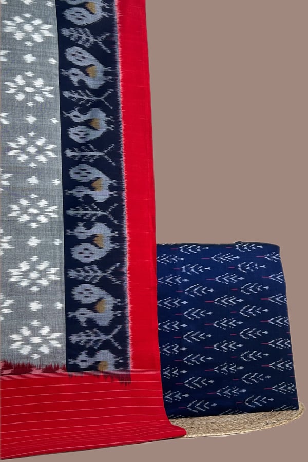2.5mtr Each – Ikkat Cotton Dupatta with Hand Tie–Dye Mercerised Ikkat Top Fabric Set