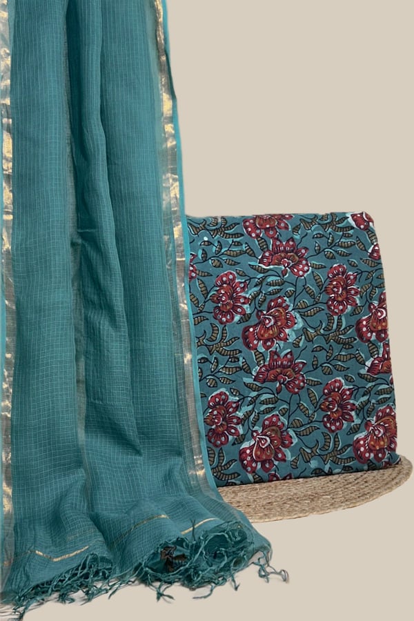 2.5mtr Each – Kota Doria Dupatta with Bagru HandBlock Cotton Top Fabric Set