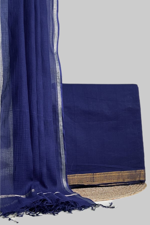 Blue – 2pc Kota Doria Dupatta and Mangalgiri Zari Border Handwoven Pure Cotton Set