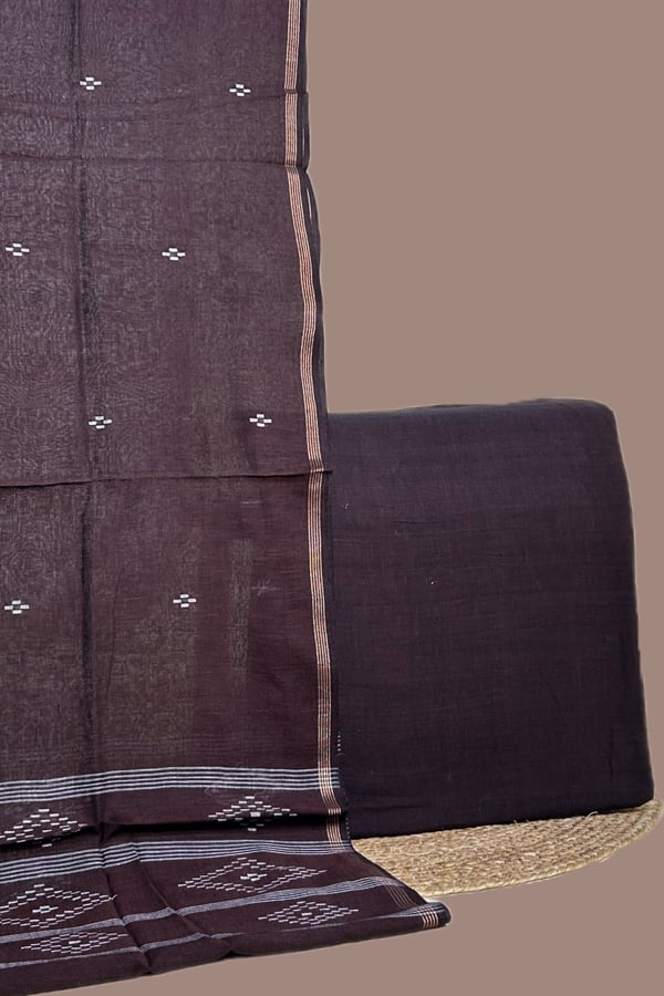 Brown – 2pc Handloom Cotton Dupatta and Handloom Soft Cotton Top Fabric Set