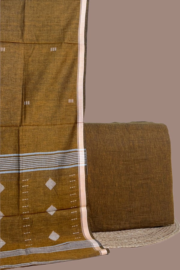 Brown – 2pc Handloom Cotton Dupatta and Handloom Soft Cotton Top Fabric Set