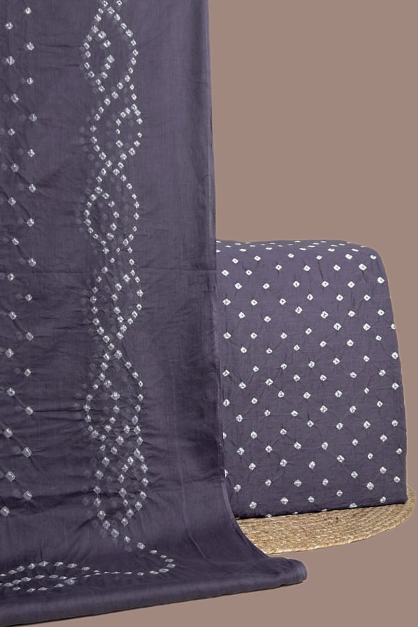 Gray – 2pc Bandhani Cotton Dupatta with Cotton Bandhani Top Fabric Set