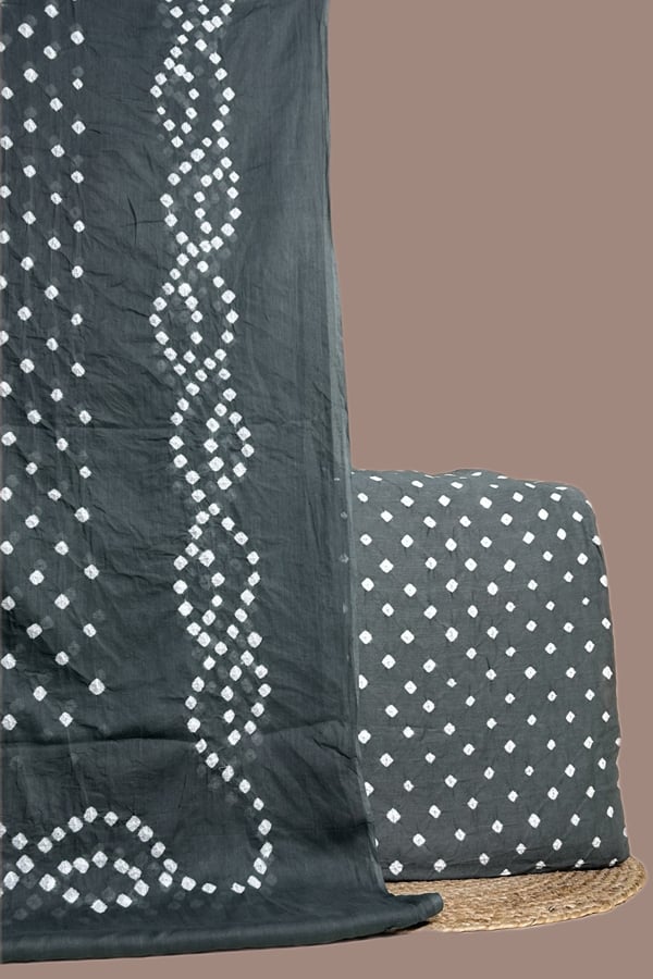 Gray – 2pc Bandhani Cotton Dupatta with Cotton Bandhani Top Fabric Set