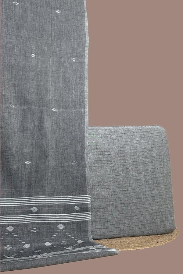 Gray 2pc Jamdani Intricate Woven Cotton Top and Handloom Bottom Fabric Set