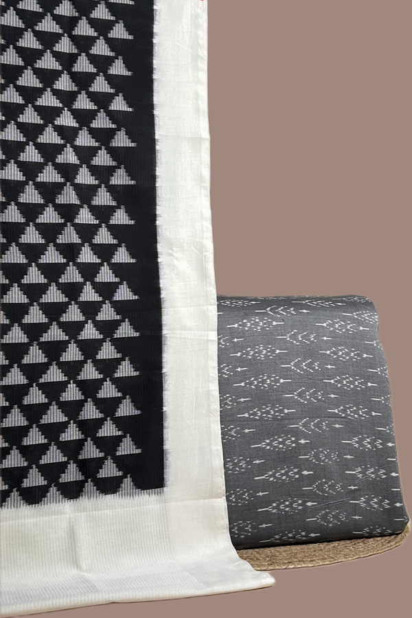 Gray – 2pc Ikkat Cotton Dupatta and Handloom Soft Ikkat Cotton Top Fabric Set