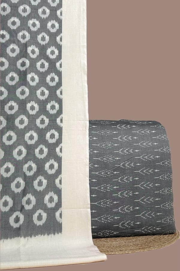 Gray – 2pc Ikkat Cotton Dupatta and Handloom Soft Ikkat Cotton Top Fabric Set