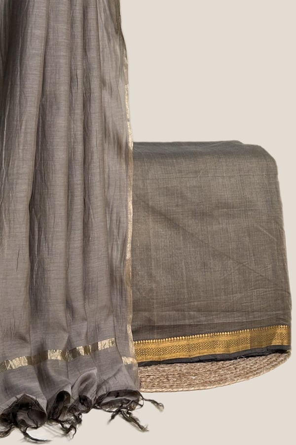 Gray – 2pc Luxe CottonSilk Dupatta and Mangalgiri Zari Border Handwoven Pure Cotton Set