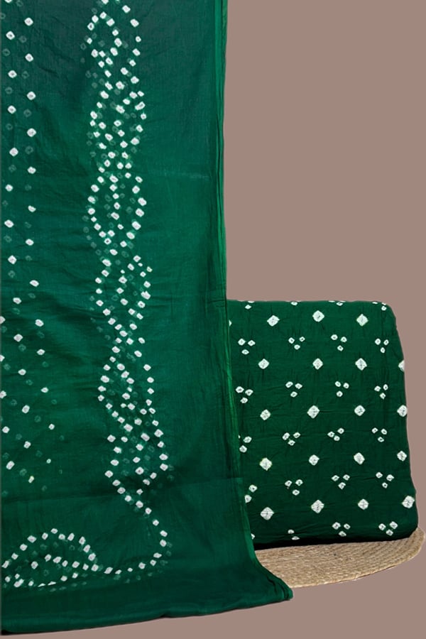 Green – 2pc Bandhani Cotton Dupatta with Cotton Bandhani Top Fabric Set