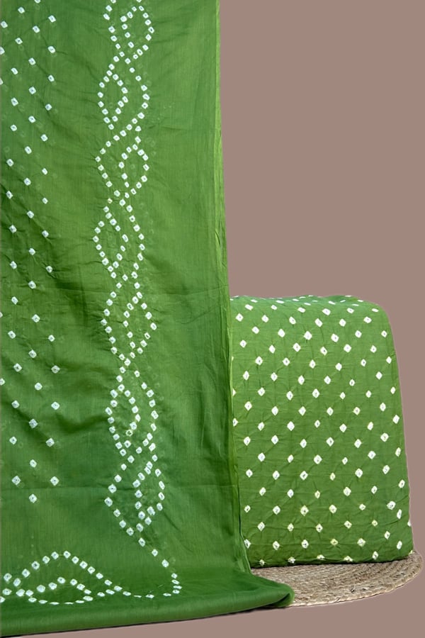 Green – 2pc Bandhani Cotton Dupatta with Cotton Bandhani Top Fabric Set