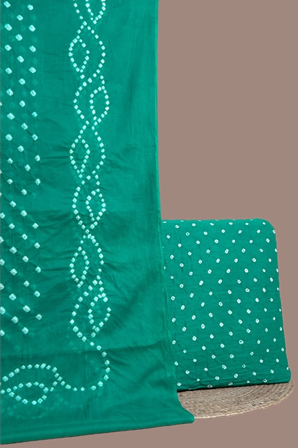 Green – 2pc Bandhani Cotton Dupatta with Cotton Bandhani Top Fabric Set