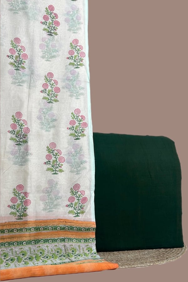 Green – 2pc Chanderi Silk Blockprint Dupatta and Handloom Plan Flowy Soft Cotton Top Fabric Set