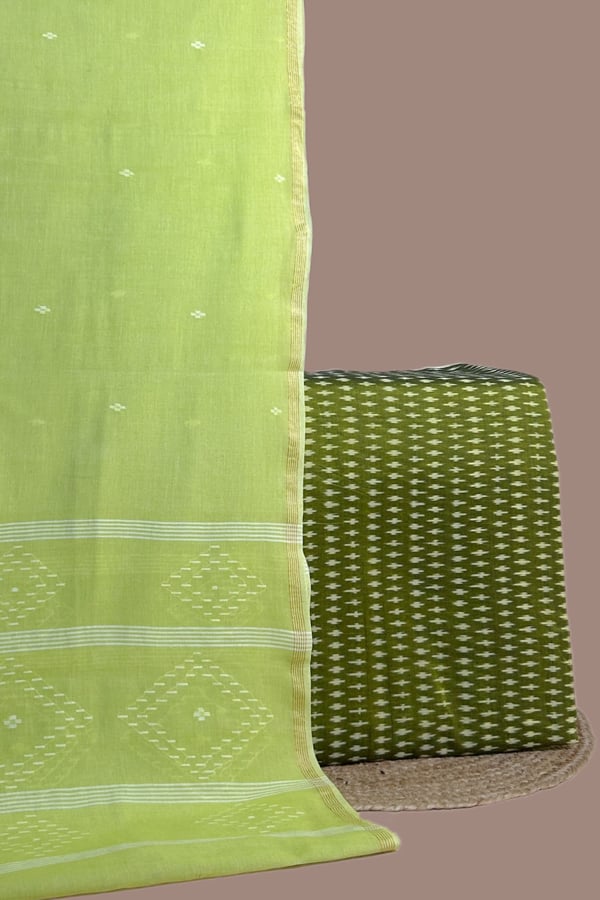 Green – 2pc Handloom Cotton Dupatta and Handloom Ikkat Top Fabric Set