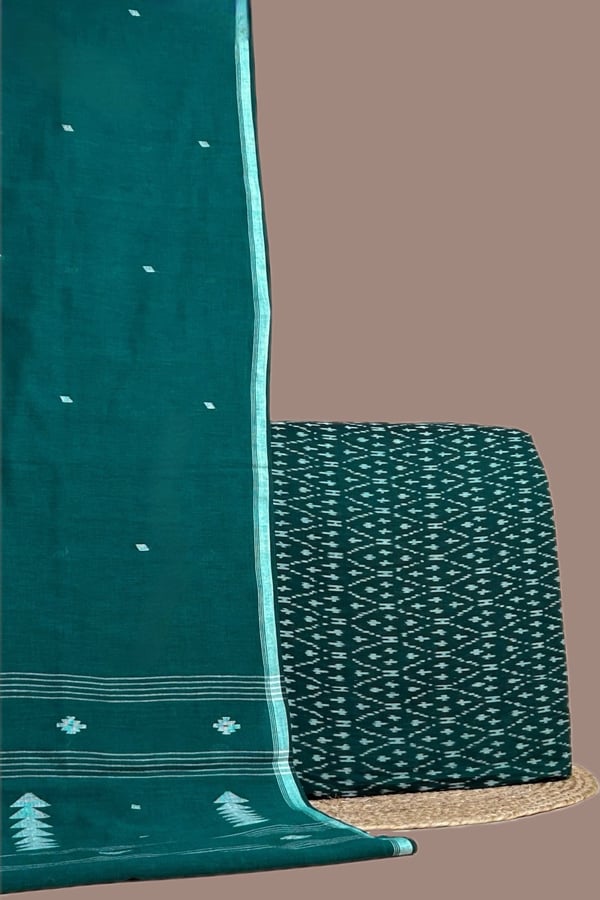 Green – 2pc Handloom Cotton Dupatta and Handloom Ikkat Top Fabric Set