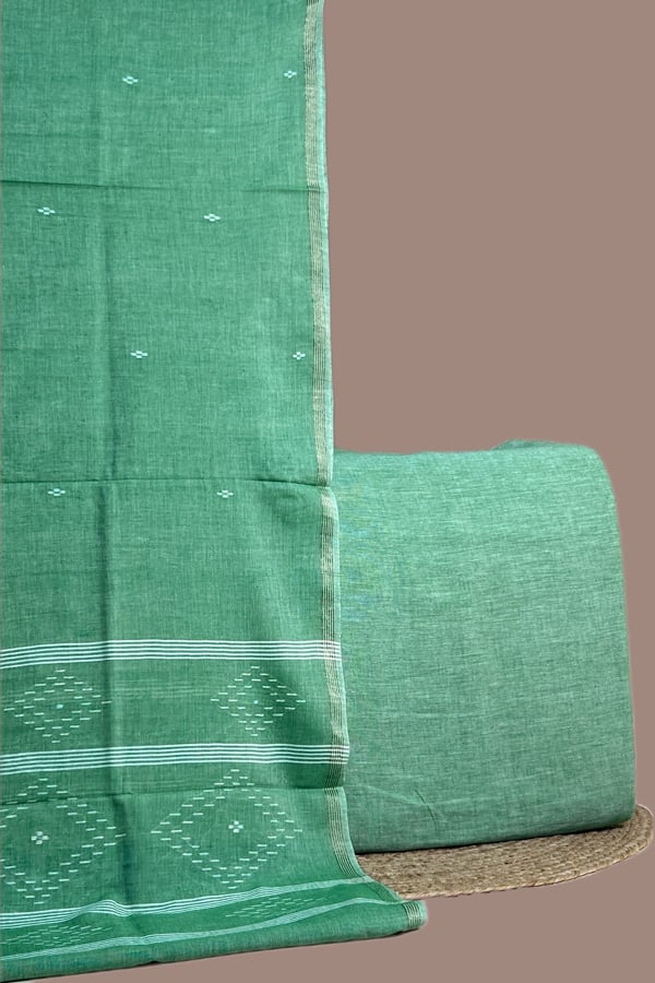 Green – 2pc Handloom Cotton Dupatta and Handloom Soft Cotton Top Fabric Set