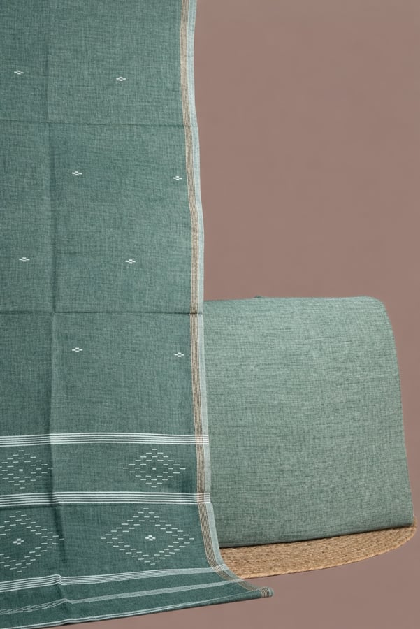 Green – 2pc Handloom Cotton Dupatta and Handloom Soft Cotton Top Fabric Set