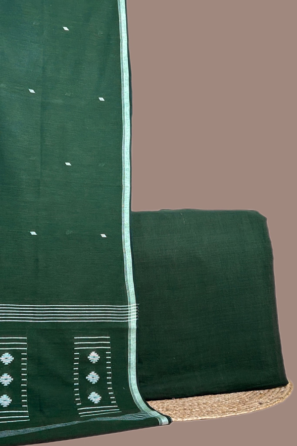 Green – 2pc Handloom Cotton Dupatta and Handloom Soft Cotton Top Fabric Set