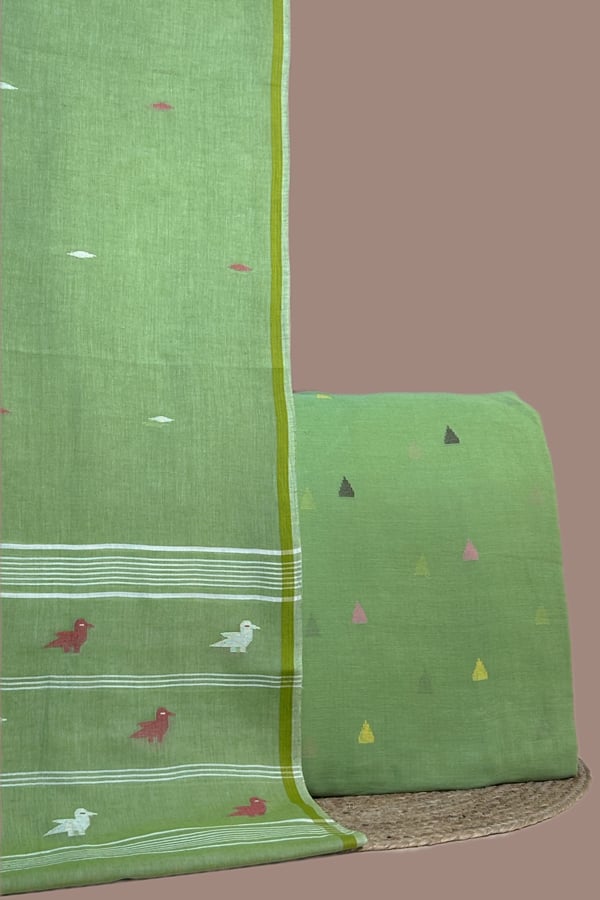 Green – 2pc Handloom Cotton Dupatta and Handloom Woven Design Top Fabric Set