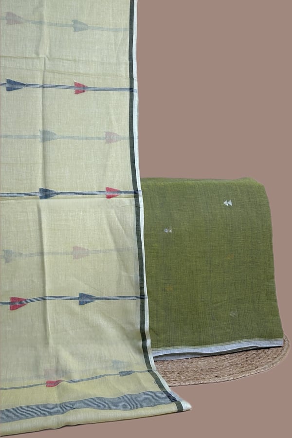 Green – 2pc Handloom Cotton Dupatta and Handloom Woven Design Top Fabric Set